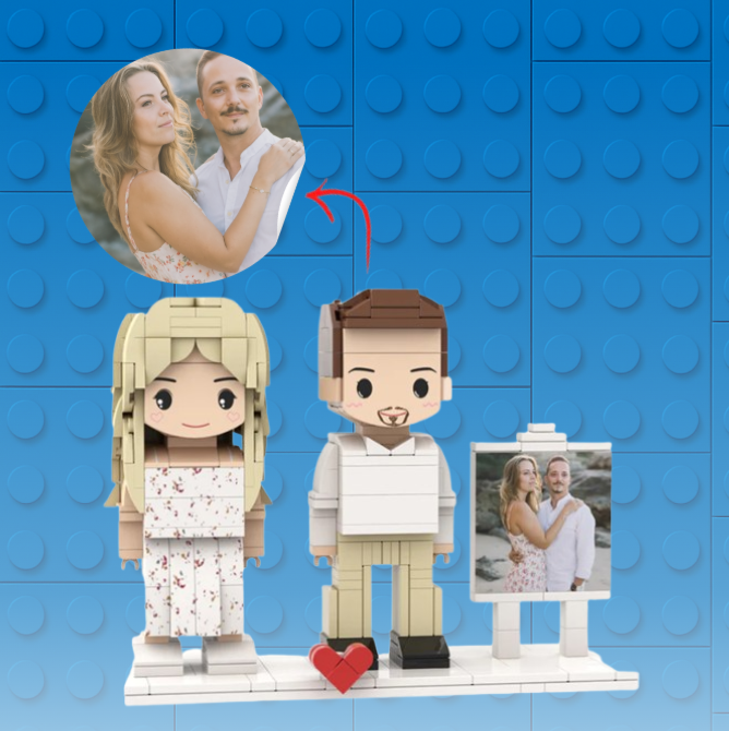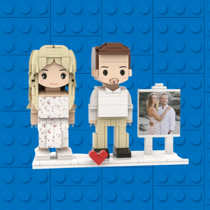 You can upload a picture with 1 or 2 people, and we’ll turn it into your very own Couple BrickSet, lovingly built, piece by piece.